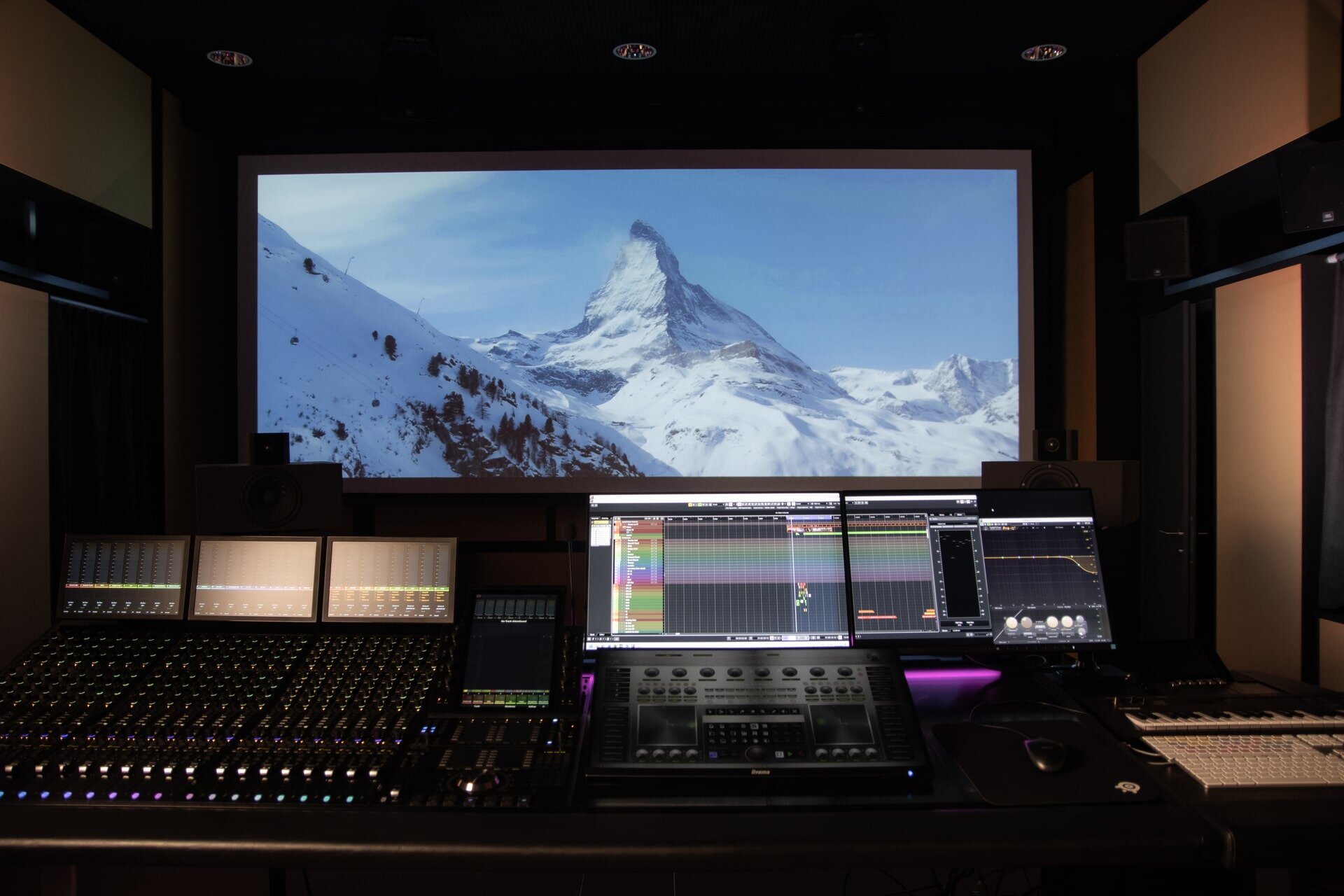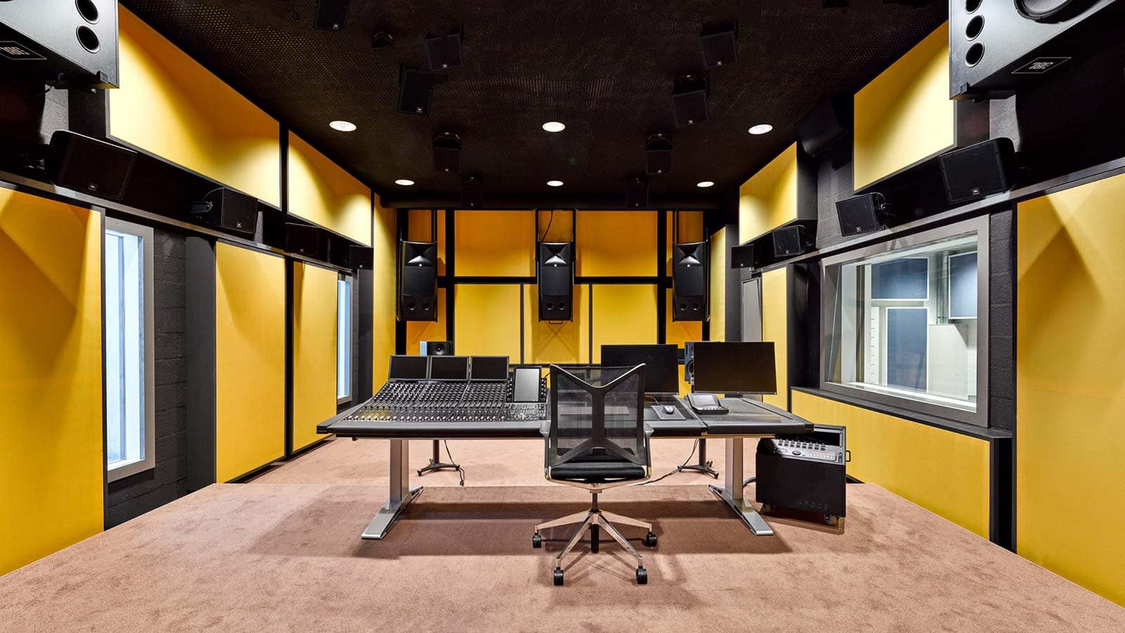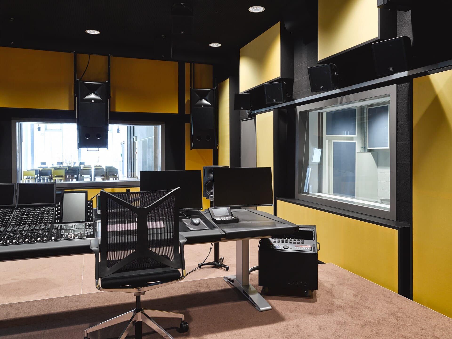 Die Abhörsituation entspricht einem Kinoreferenzstandard und erlaubt präzise Entscheidungen über Raumabbildung, Dynamik und Balance. STUDIO 1 ist kein flexibler Projektionsraum, sondern ein stabiler Arbeitsraum für konzentrierte Mischungen über längere Zeiträume.