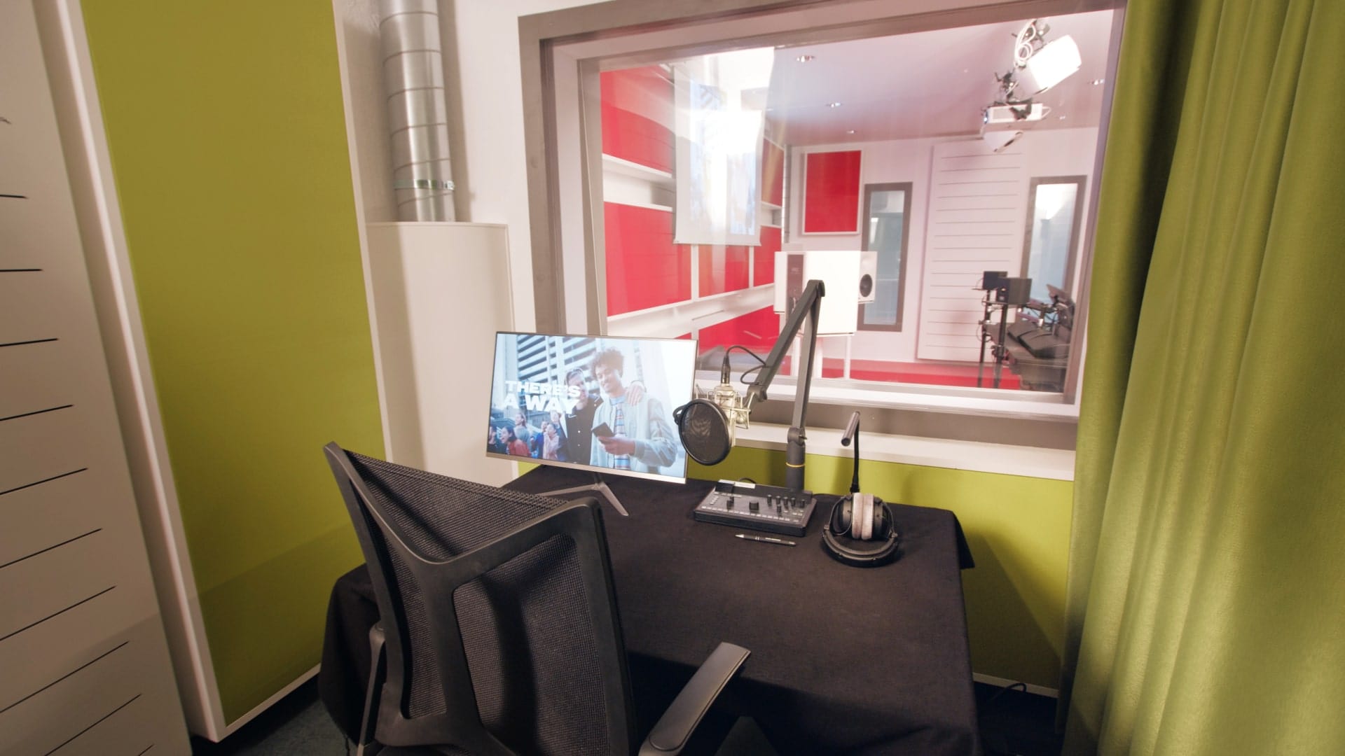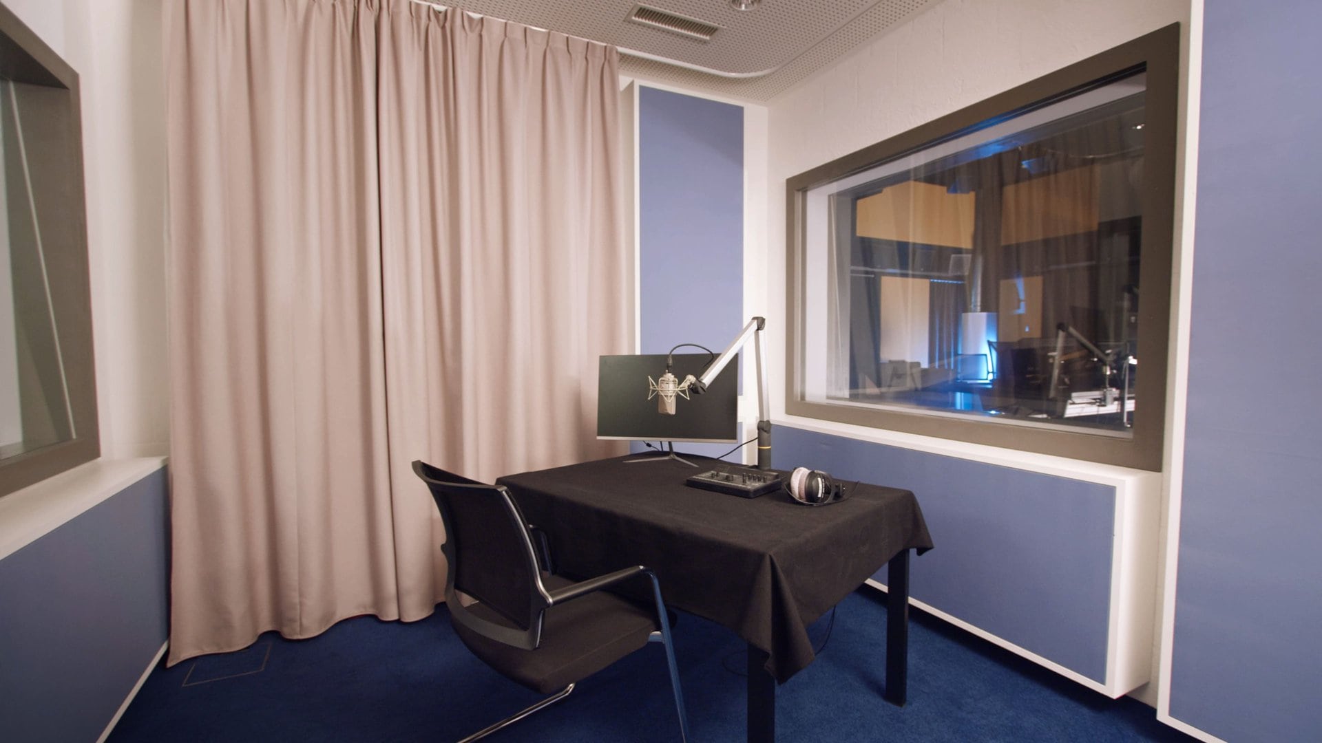 Die Booths ergänzen den Live Room um kontrollierte, trockene Aufnahmeräume für Gesang, Sprache und Einzelinstrumente. Sie eignen sich für präzise Takes, Overdubs oder paralleles Arbeiten während einer Session. Durch die direkte Anbindung an die Regien sind schnelle Wechsel und effiziente Abläufe möglich.